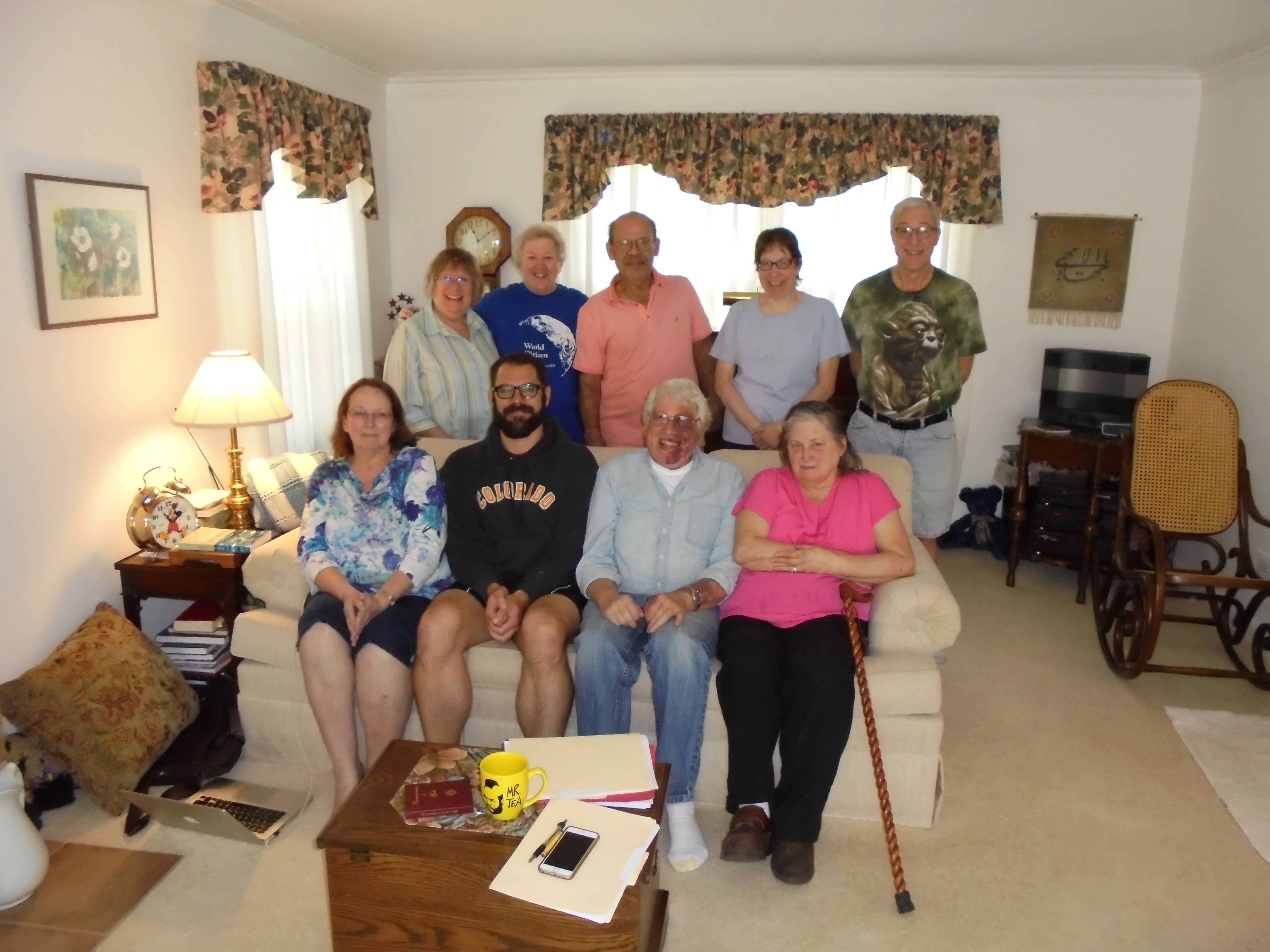 Beloit's new Local Spiritual Assembly, elected in April 2016. Front left to right, Monica Grismer, Tom Owenby, Rob Butz, Barb Baysinger. Standing left to right, Sue Alexander, Susan Benton, Larry Baysinger, Leslie Rennie, Steve Benton.