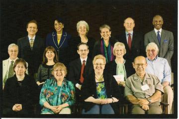 Members of the Beloit Local Spiritual Assembly participated in a weekend workshop at the National Center and House of Worship in Wilmette, Illinois March 23rd and 24th. Along with members of the Fort Collins and Westminster, Colorado Local Spiritual Assemblies, we learned about all of the offices at the National Center, got a tour of the House of Workship (including a visit to the archives) and met with the National Spiritual Assembly. The attached picture was taken in Foundation Hall at the House of Worship after our meeting with the National Spiritual Assembly. Click on the picture to enlarge.